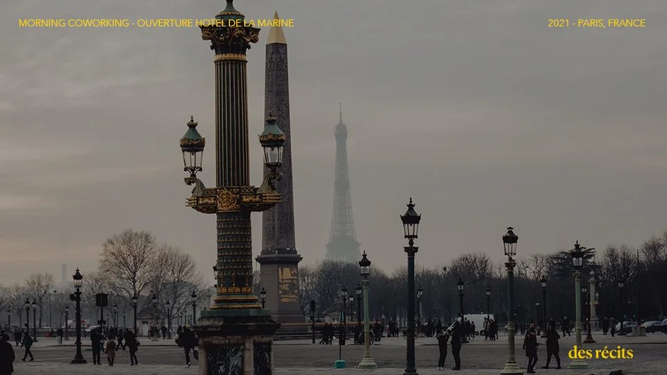 Tournage pour l’ouverture de l’espace Morning Coworking à l’hôtel de la Marine. Tournage / rush : des récits. Montage et animation : Morning Coworking